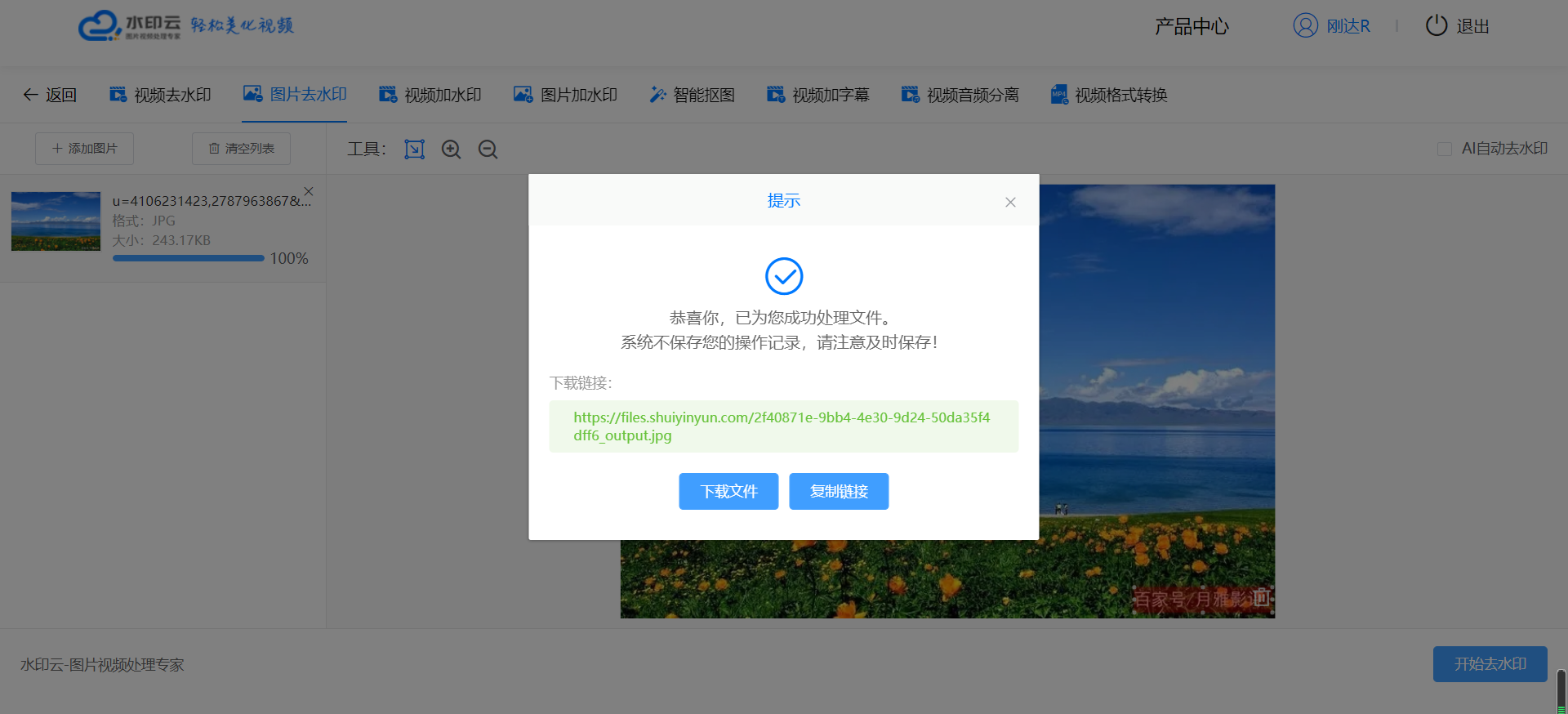 从刚才的操作流程中我们可以看到水印云的去水印操作是非常的简单,而且水印云还有视频去水印、提取无水印短视频、格式转换等功能,一起试试看吧!