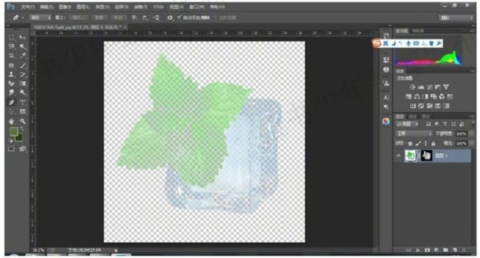 8.为了观察冰块是否被扣出,我们在冰块下面弄个背景,来看看效果: