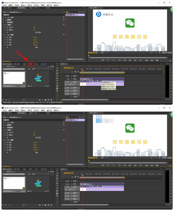 大家要是需要在电脑上去除视频水印的话,可以使用【Pr】软件来帮我们完成这样的操作。我们可以将需要去除水印的视频导入Pr中,点击【效果】-【马赛克】,然后根据水印的位置对马赛克的大小和位置进行调整遮挡就可以了。