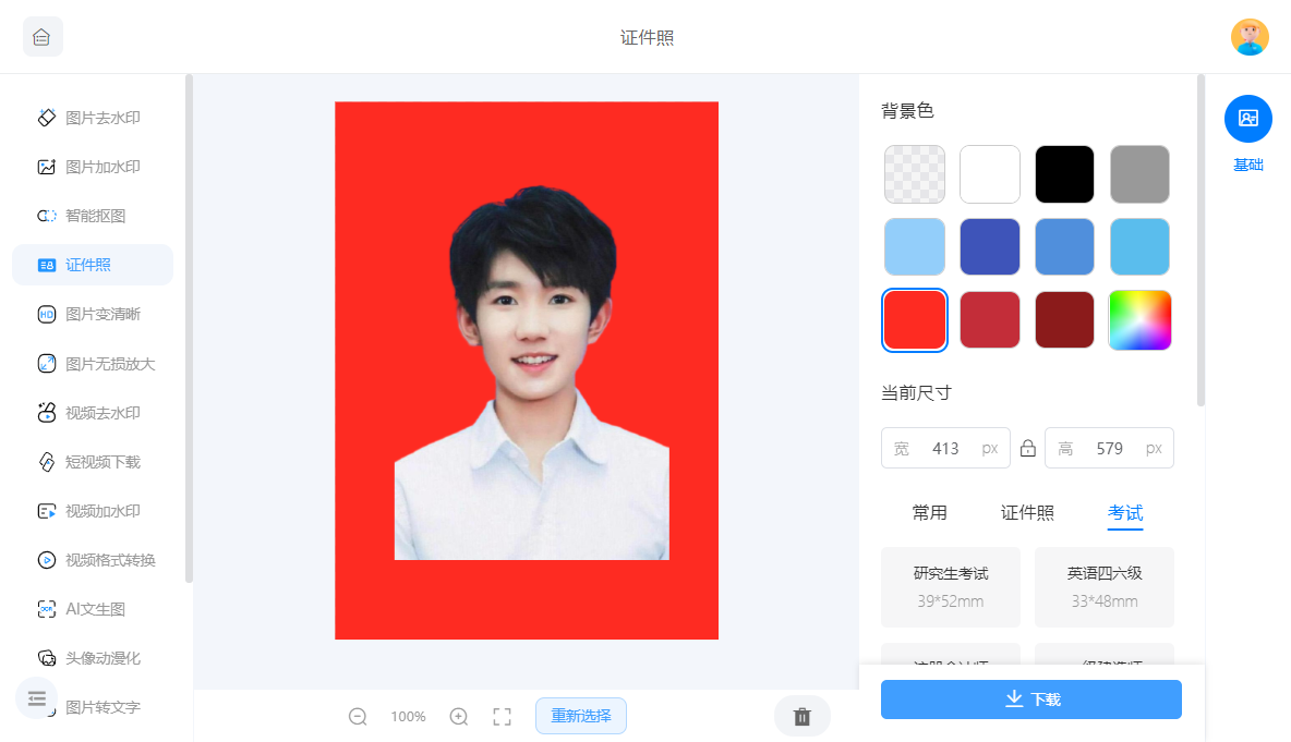 国内市场上,水印云是一款备受欢迎的图像处理应用。它不仅内置了多种规格尺寸供用户选择,而且具有智能抠图、一键换底色、图像消除等功能,确保用户能够在保持真实面貌的同时,制作出既合规又美观的证件照。另外,水印云感觉整洁的操作界面和简单的使用步骤,大大提升了用户体验。