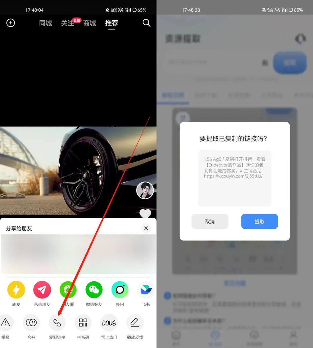 我们复制视频链接,然后打开软件,软件会自动识别链接,点击提取,就可以跳转到下载页面。