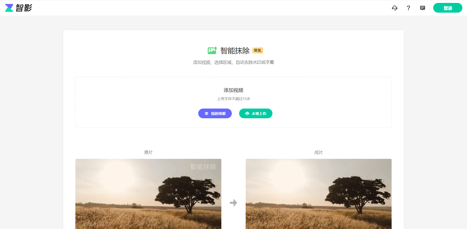 水印云视频去水印也是同样的道理,这里就不再额外介绍了,这里要推荐的是小编最近新发现的一款完全免费的视频去水印工具,它就是腾讯的智影!