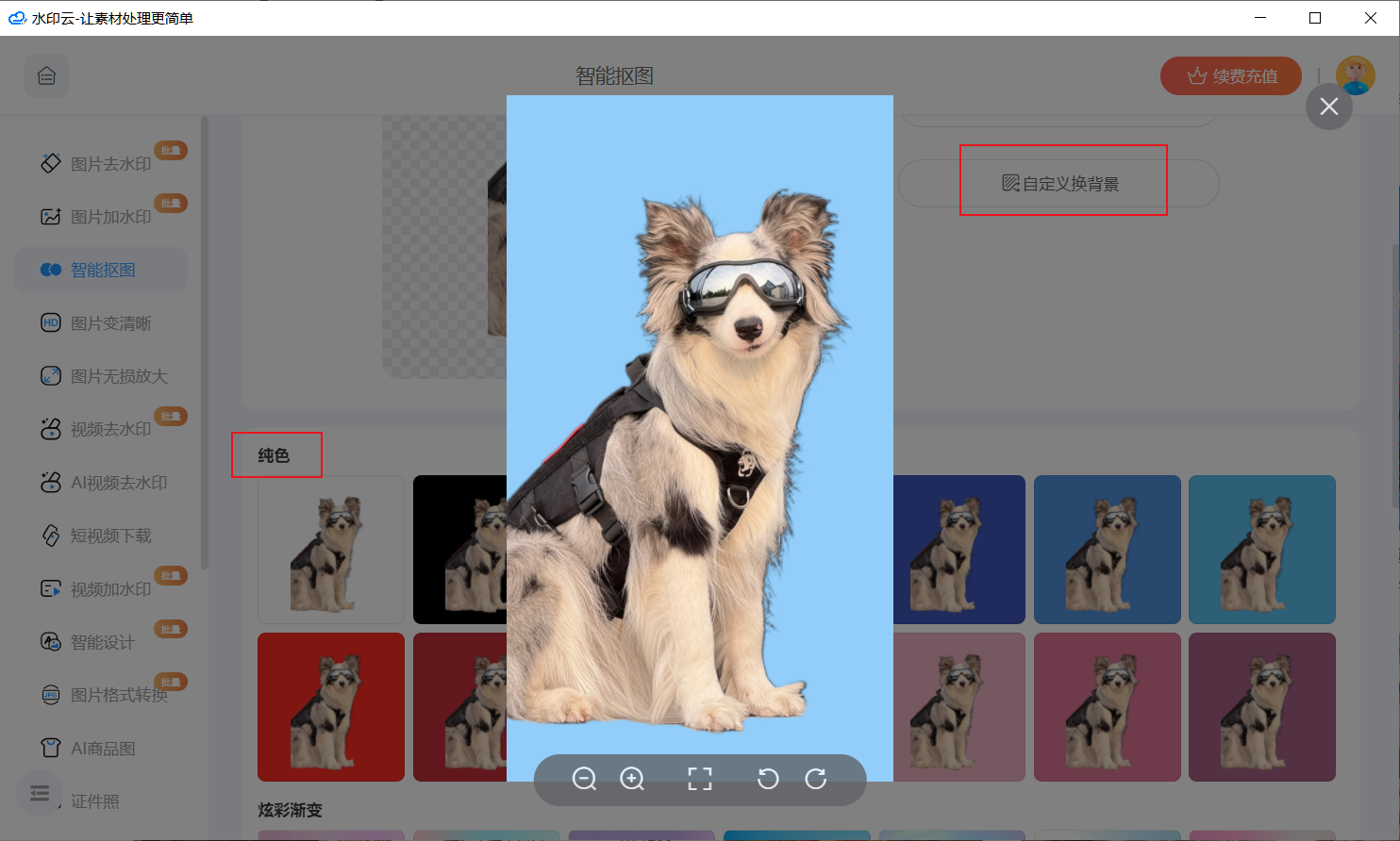 水印云凭借其先进的图像识别技术,能够轻松识别图片主体,并将其与背景完美分离。无需繁琐的手动操作,只需上传图片,系统即可自动完成抠图。它支持多种图片格式,更为便捷的是,水印云还有 APP 版,供你随时随地使用。无论是日常证件照换底色,还是电商白底图制作,亦或是照片换背景等,都可以轻松搞定。