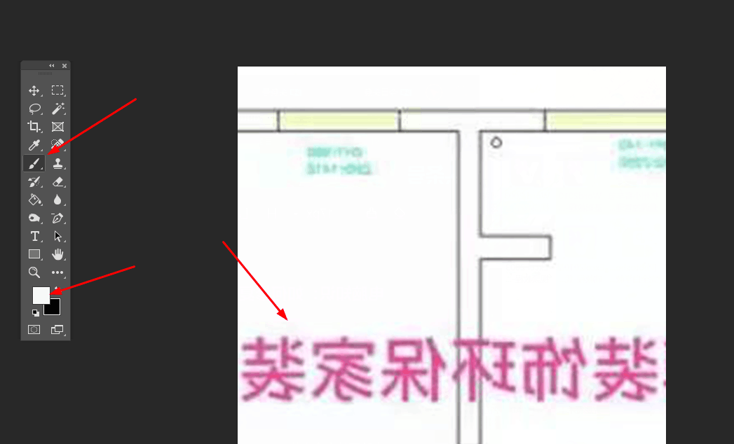 方法二:选用工具栏的画笔工具,去掉空白区域的字体。