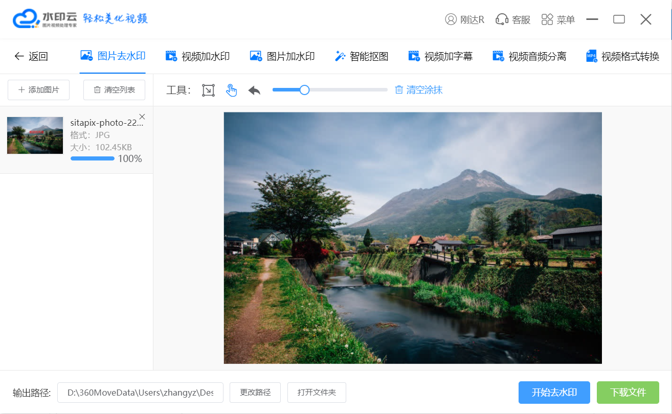 3、点击开始去水印,会看到水印瞬间就被消除的干干净净啦!