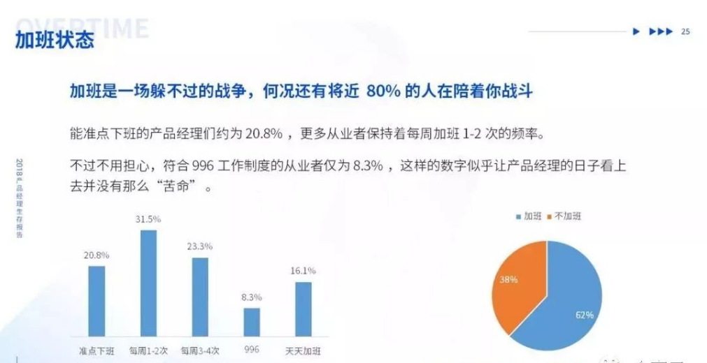 不过不用担心,符合 996 工作制度的从业者仅为 8.3% ,这样的数字似乎让产品经理的日子看上去并没有那么“苦命” 。