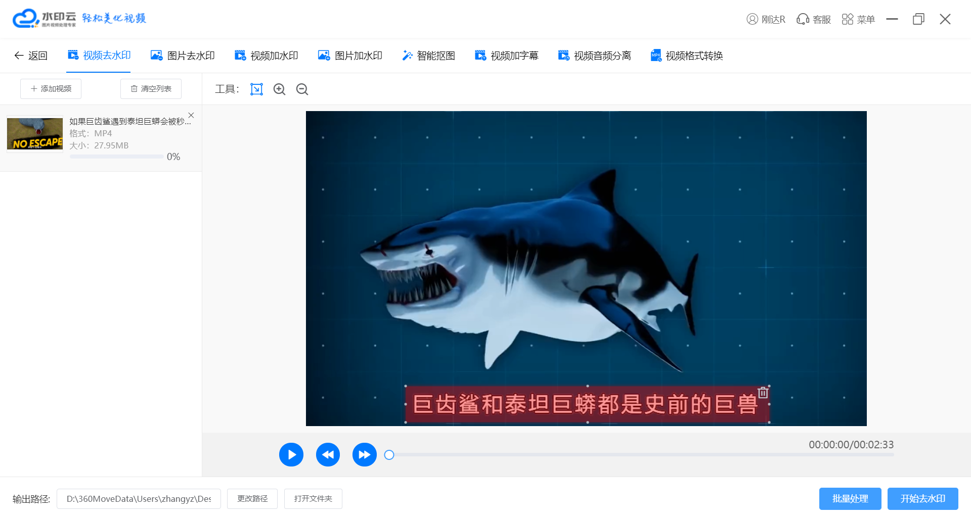 最后点击【开始去水印】就完成所有操作啦!如果水印复杂还可以选择网页版的AI功能获取更好的效果哦!