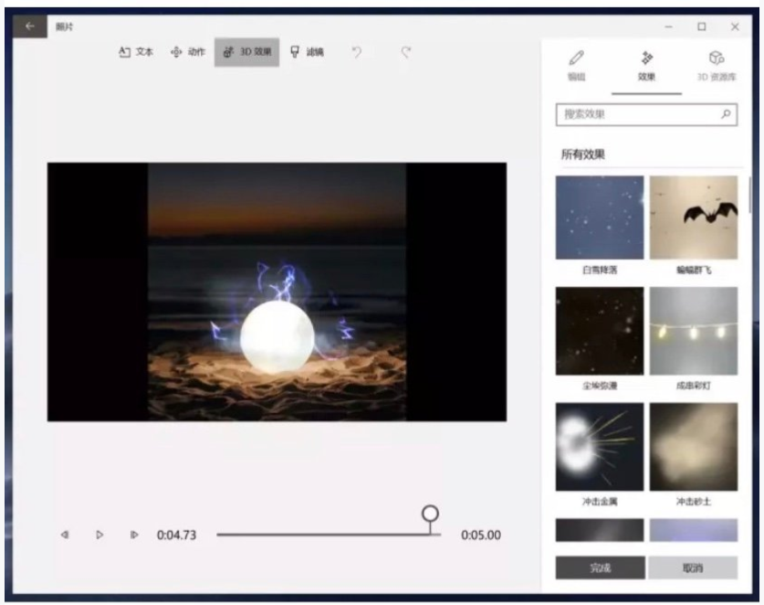 软件内置了一些动态的特效,如白雪降落、蝙蝠群飞和电火花等,可以让我们轻松做出五毛钱的特效。