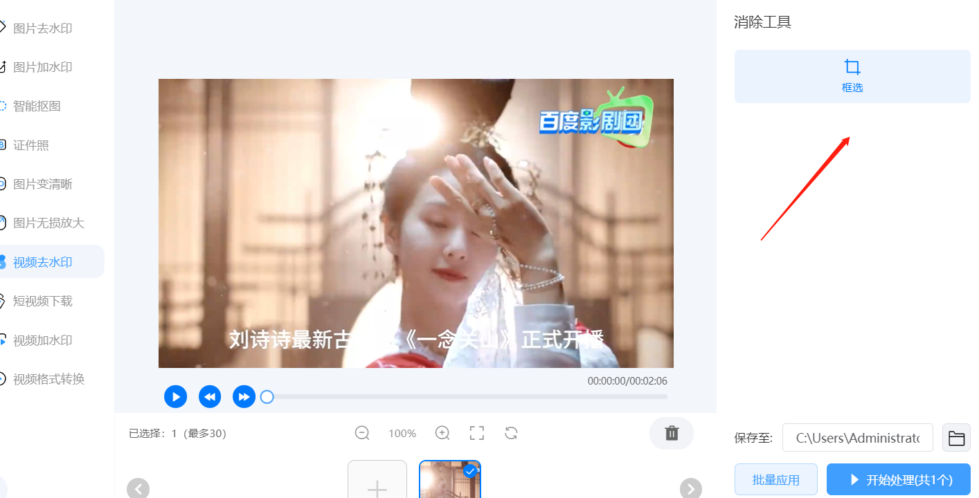 2、选择“图片去水印”或“视频去水印”功能,并调整需要去除水印的区域。