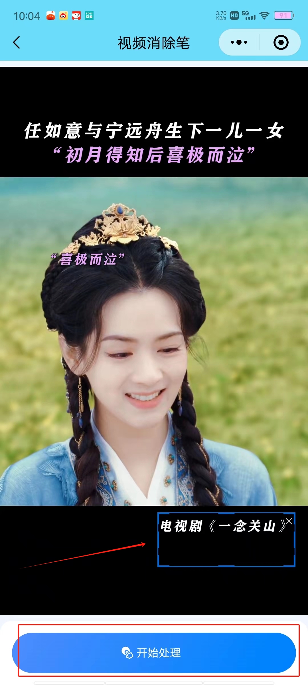第二步把需要去水印的视频上传然后可以看到里面有一个框选工具把需要去水印的部分框选出来。
