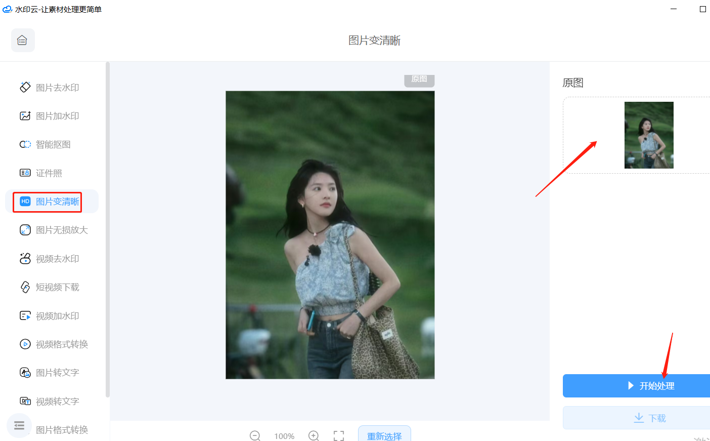 点击“开始处理”按钮,等待几秒即可得到一张清晰的照片