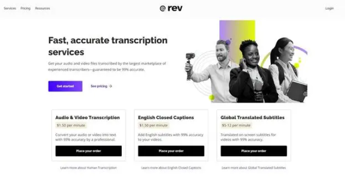Rev是一款专业的语音转文字软件,可以将视频和音频文件转换为文本,准确度高非常高。它支持多种语言,速度快,只需将视频或者音频上传选择识别语言就可完成。