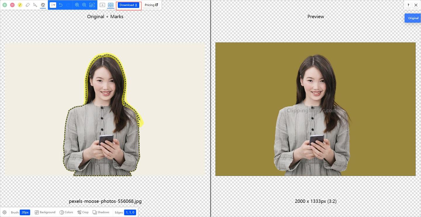 Clipping Magic是一款在线抠图工具,通过AI算法实现智能抠图。
