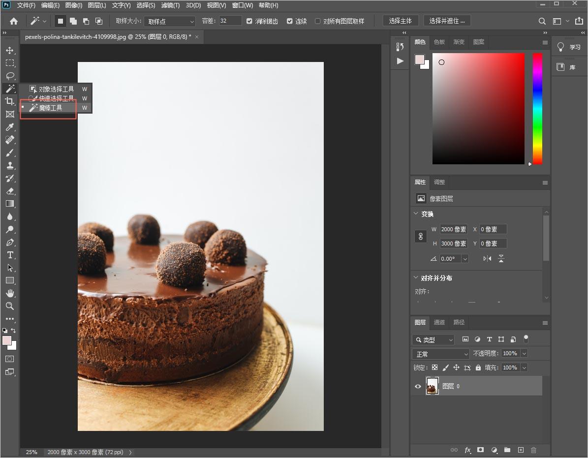 2、使用“快速选择工具”或“磁性套索工具”圈选出需要抠图的区域。