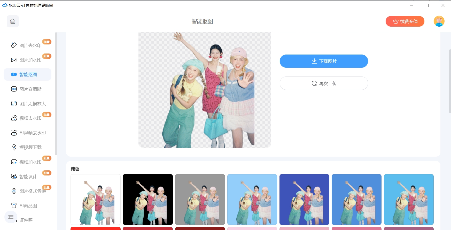 水印云一款功能强大的AI图像处理软件,其中智能抠图通过先进的 AI 技术,且操作简单,只需一键点击,就能借助智能技术识别并去除背景,并且支持多种图片格式的导入与导出。