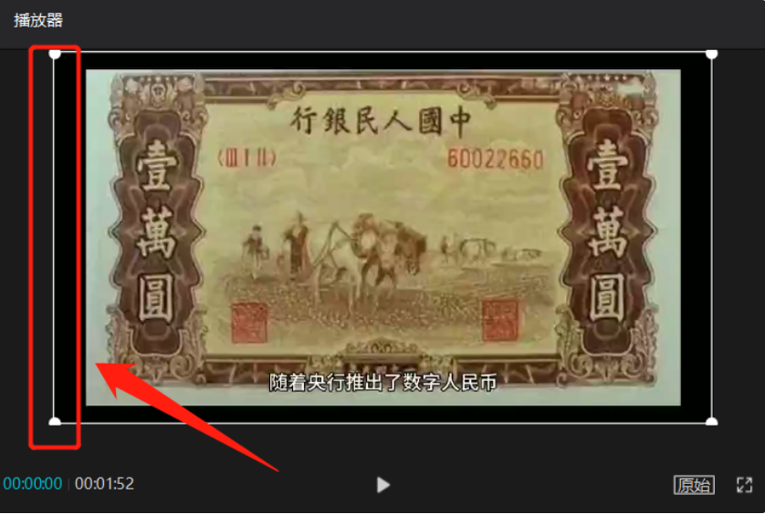 如果仔细观察“播放预览窗口”,我们就会发现视频的播放栏内存在一个白色的选框。如下图: