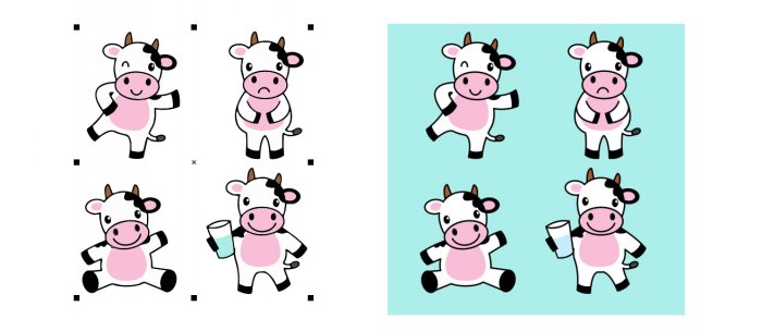 2、选中导入的位图。我们这次的抠图任务是去掉蓝色背景,扣出图中的4只小牛;